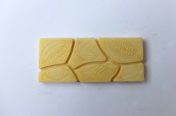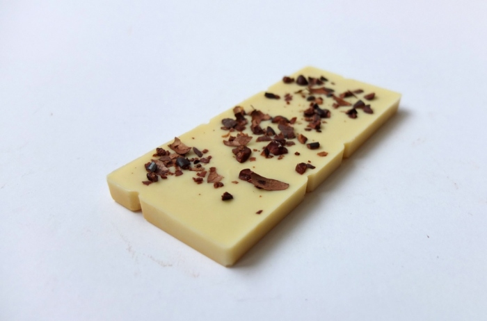 Tabulková čokoláda z bílé čokolády s přidanými drcenými kakaovými boby.