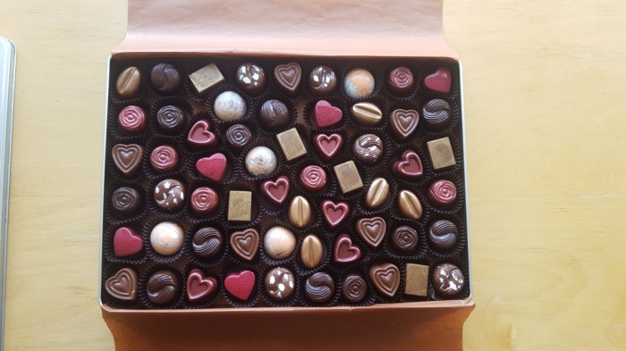 Maxi bonboniéra 60 ks pralinek mix v plechové krabičce. Pralinky vyberu z těchto druhů, podle toho které mám čerstvě vyrobené.