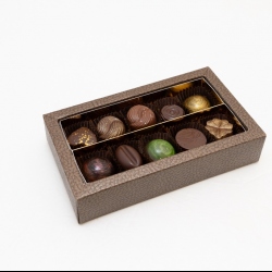 Bonboniéra obsahuje 10 pralinek z hořké čokolády
