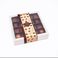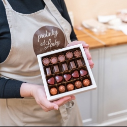 Bonboniéra obsahuje 20 pralinek, 4 druhy náplně