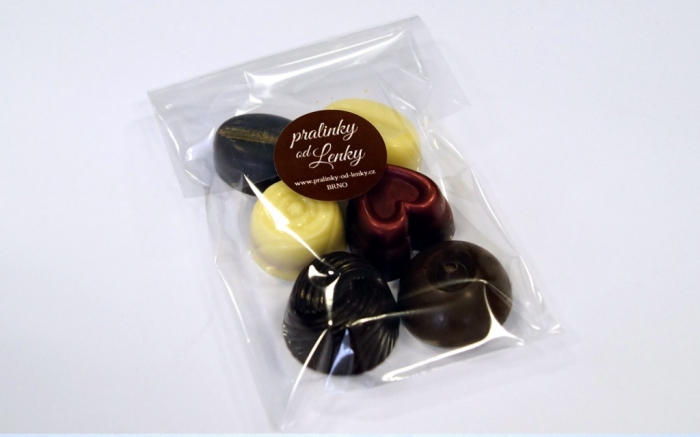 Ochutnávkové balení 6 ks pralinek mix v celofánovém sáčku.